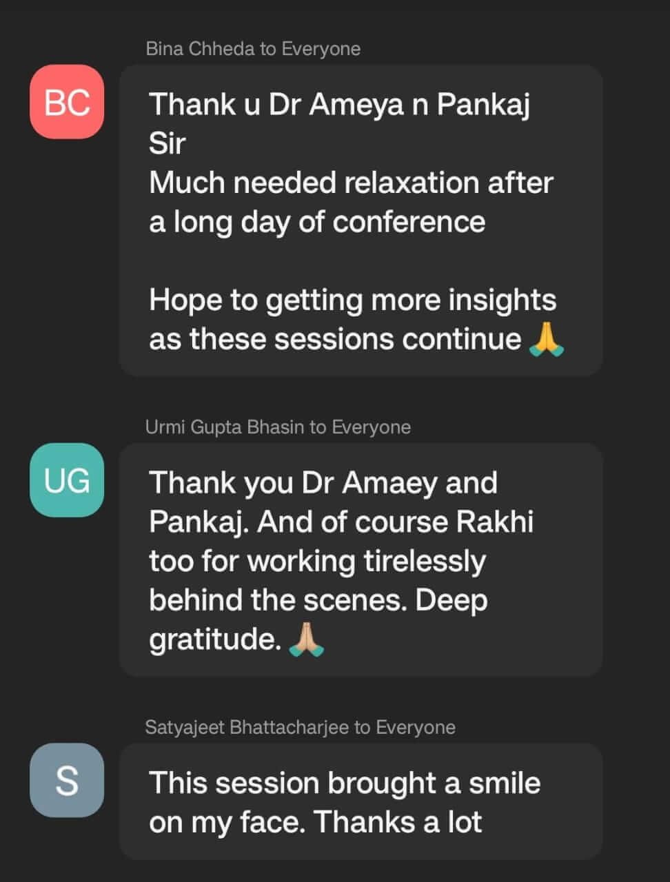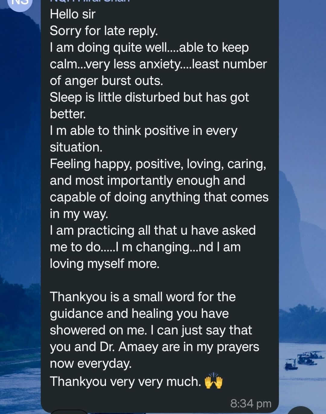 The programs have been enormously helpful for me. I have learnt sleep hacks and am implementing them. I am a lot less stressed at all times using Dr Amaey’s techniques. Furthermore, his program has helped me tackle my problem of claustrophobia, for which I am extremely grateful. Thank you! 🙏🏼